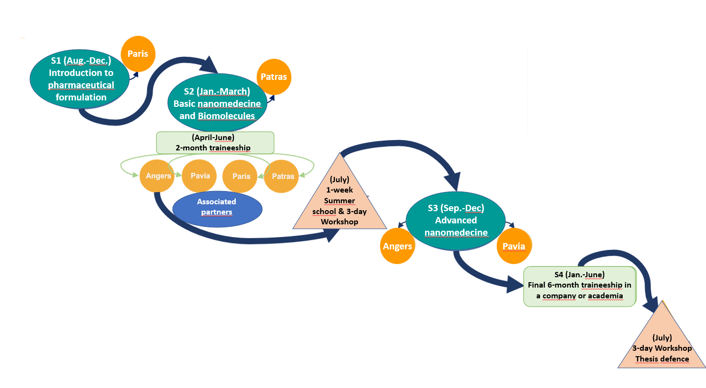 This mobility scheme, allows each student to access specific courses related to their personal interest or career plan and ensure both high quality training with various experts in Nanomedicine and development of professional soft skills through multicultural training. During the application process, students will be given the opportunity to disclose their preference regarding their destination for semester 3 but it is the Selection Committee that will make the final decision. This decision will essentially be based on each student’s background, experience and career plan. The students’ expressed preference will be fulfilled whenever possible.